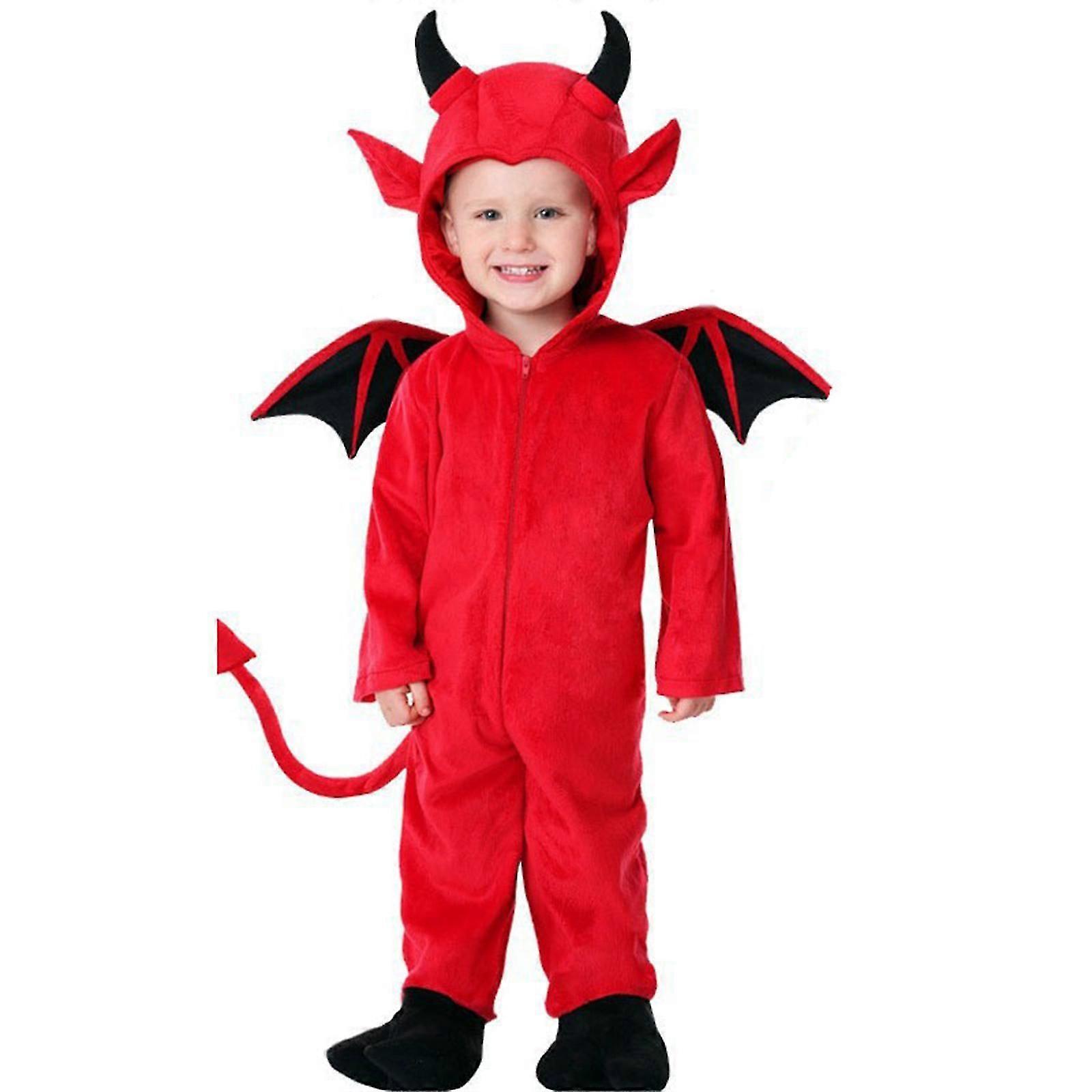 Hooded Bat Jumpsuit Halloween Devil Costume with Wing Halloween Bat Dress up Costume Accessories for Children Boy Girl Red XL