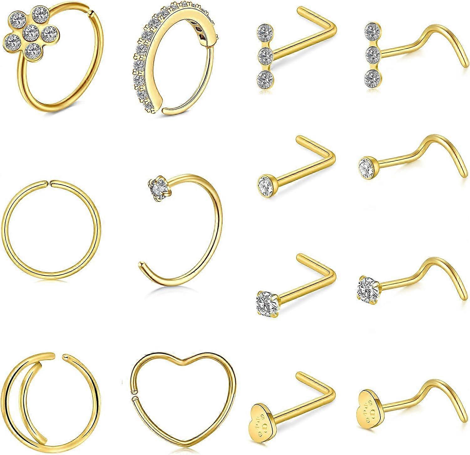 Hoop Nose Rings - 20g L Shape Studs, Surgical Steel Corkscrew Hoops