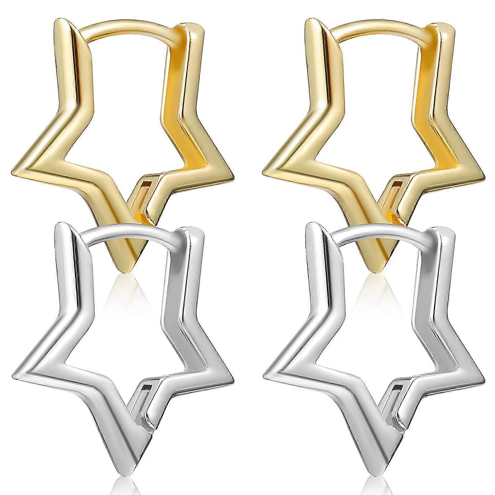 Hoop Earrings Set Star Shaped Earrings Classic Style Safe for Sensitive Ears 2 Pairs