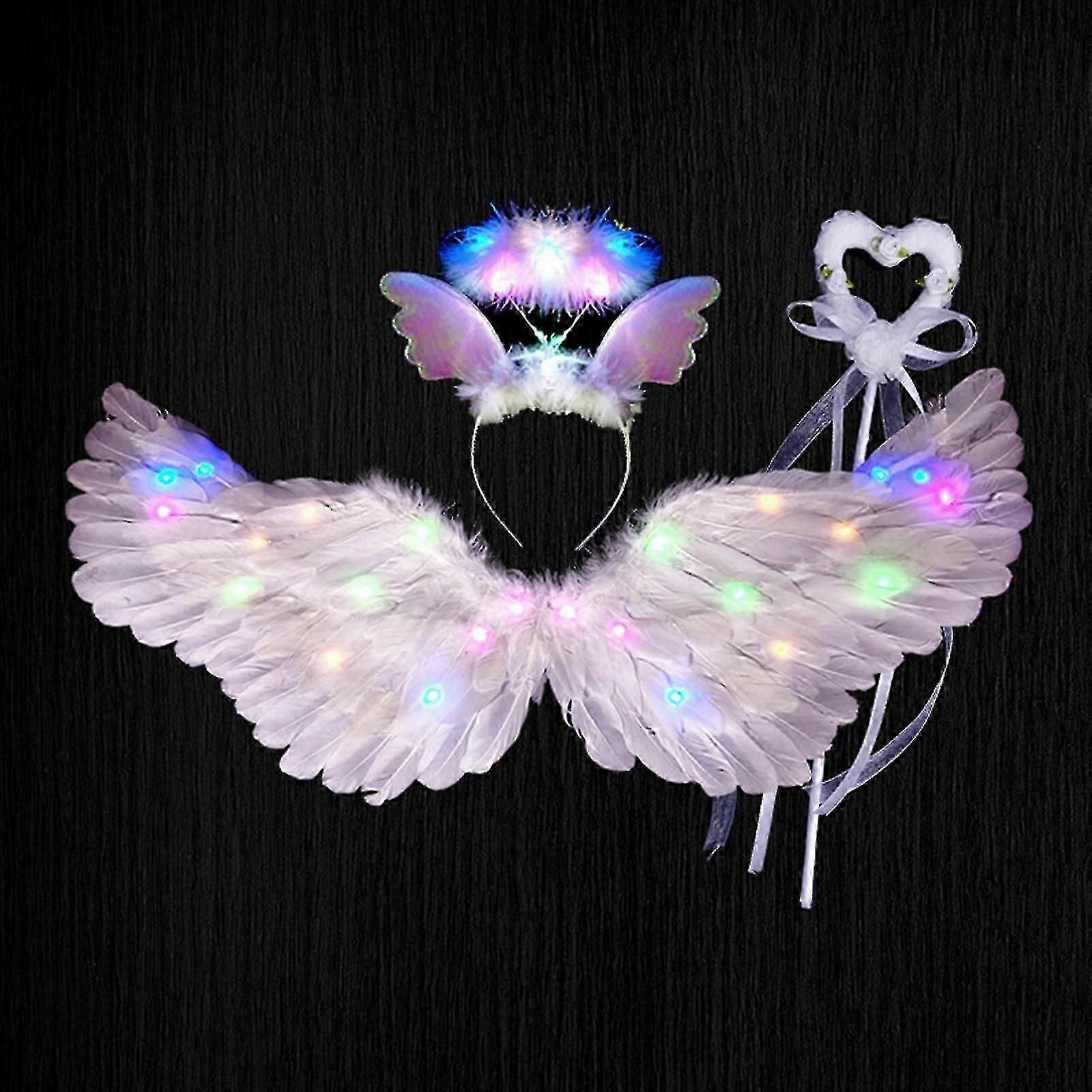 Best Sellers-angel Wings, Light Up Angel Wings And Halos With Led Lights, White Angel Wings Costume For Halloween Xmas-hao