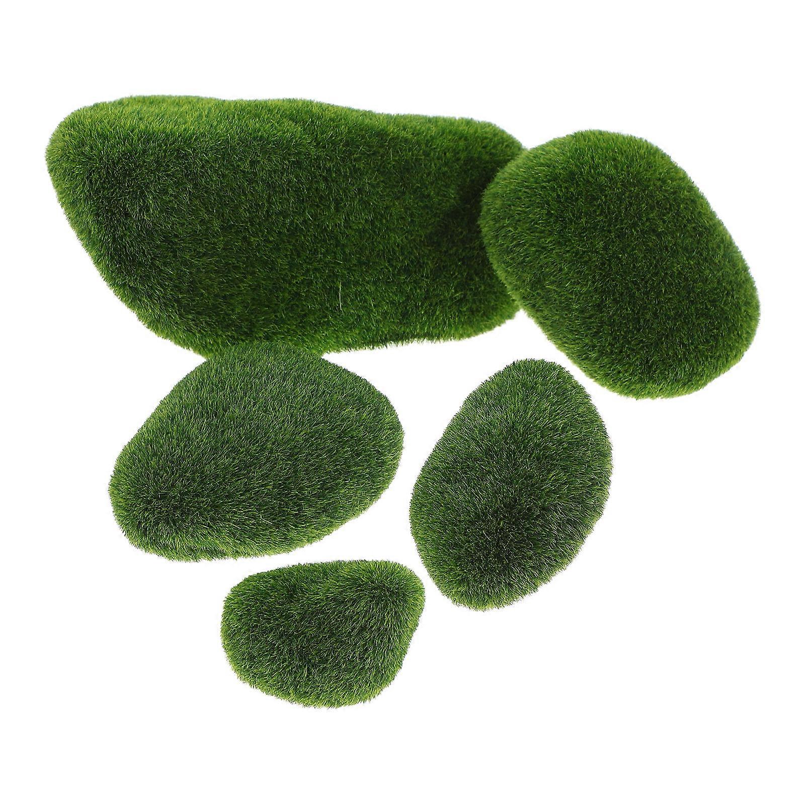 Betta Fish Tank Accessories Artificial Moss Rocks For Aquarium Decorative Faux Moss Covered Stones 5Pcs