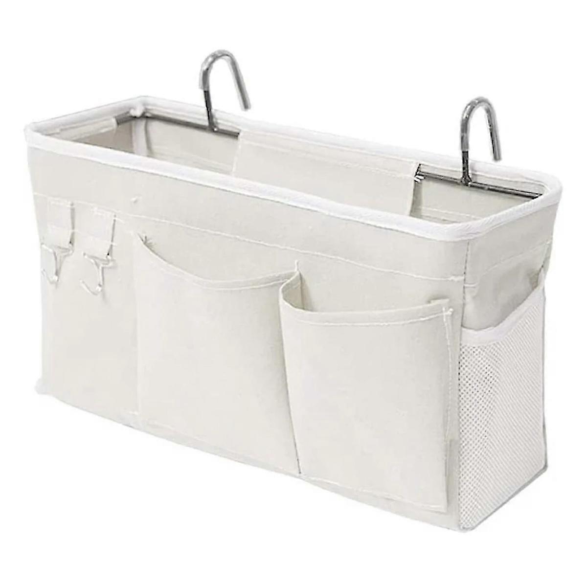 1. High Quality MaterialMade of canvas and metal. environmental protection, durable; Internal waterproof coating.2. Easy InstallationOur bedside buddy for all your needs and easy to install on any headboard or bed rail with hook design,good load bearing, save your time and energy. The magic strap design allow to take down to clean.3. Large Capacity & Space SaveKeep your items close to you for easy retrieval and never lose them again. bedside caddie organizer will store all your belongings: such as tablets, phones, books, magazines, cables, and other gadgets together.4. Wide ApplicationSuitable for home, dorm rooms, bunk beds, hospital beds, small apartments,and traveling, will fit in just about anywhere a perfect accessory for every person.5. Perfect SizeLarge capacity, perfect storage: 37x12x20cm/14.57x4.72x7.87inch.