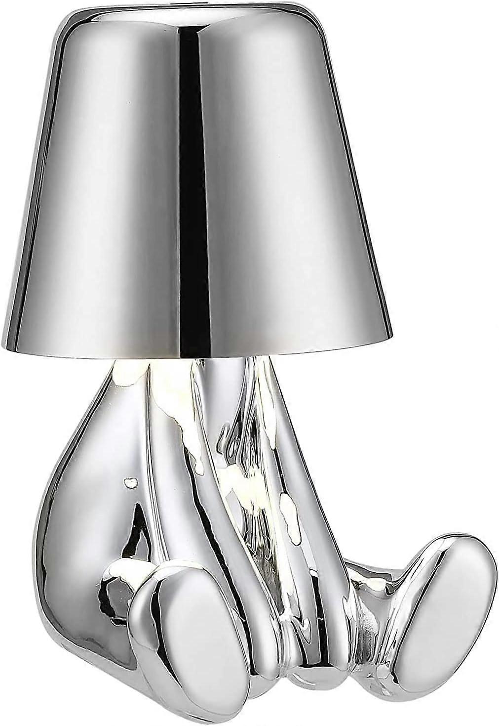 Bedside Touch Desk Lamp, Thinker Lamp Collection, Rechargeable Lamp, Creative Bedside Night Light for Living Room, Bedroom, Office,Silver,Mr.What