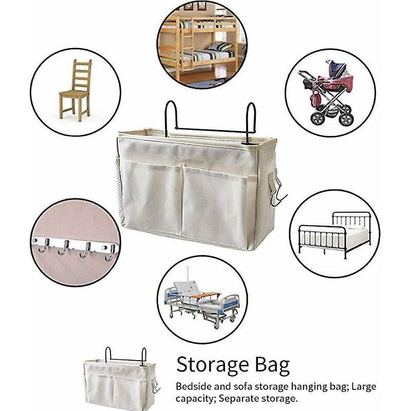 Bedside Bags Multifunctional Hanging Bedside Bunk Bedside Bags Multifunctional Bedside Pockets Organizer for Bunk Bed,Dorms,Bed Rails and Chair (Whit