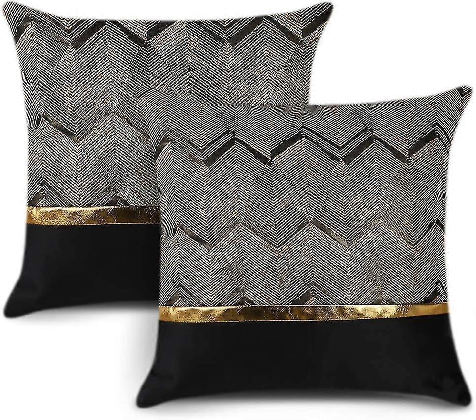 Set of 2 Cushion Covers for Bed Sofa Car Decor Luxury Modern Minimalist Gold Leather with Wavy Stitching and Stripes