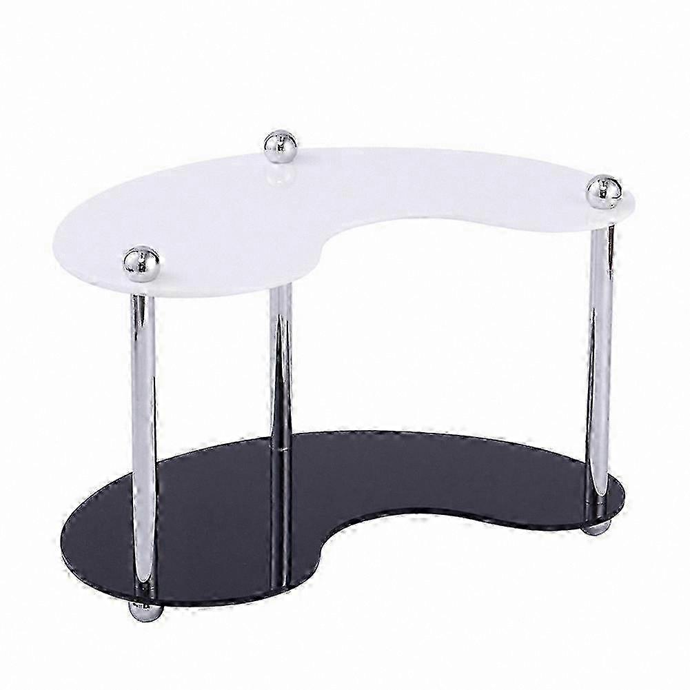 This display stand features a beautiful curvature, ideal for showcasing items such as cupcakes or perfumes. The upper and lower display shelves have unique shapes, giving the stand a personalized appearance and helping keep your space organized and elegant. Specifications: Black + Porcelain White Material: Acrylic + Iron Color: As shown Package Contents: 1 x Display rack Note: Light reflection and different displays may cause slight variations in the color of the item compared to the picture. Measurement may vary by 1-3 cm.