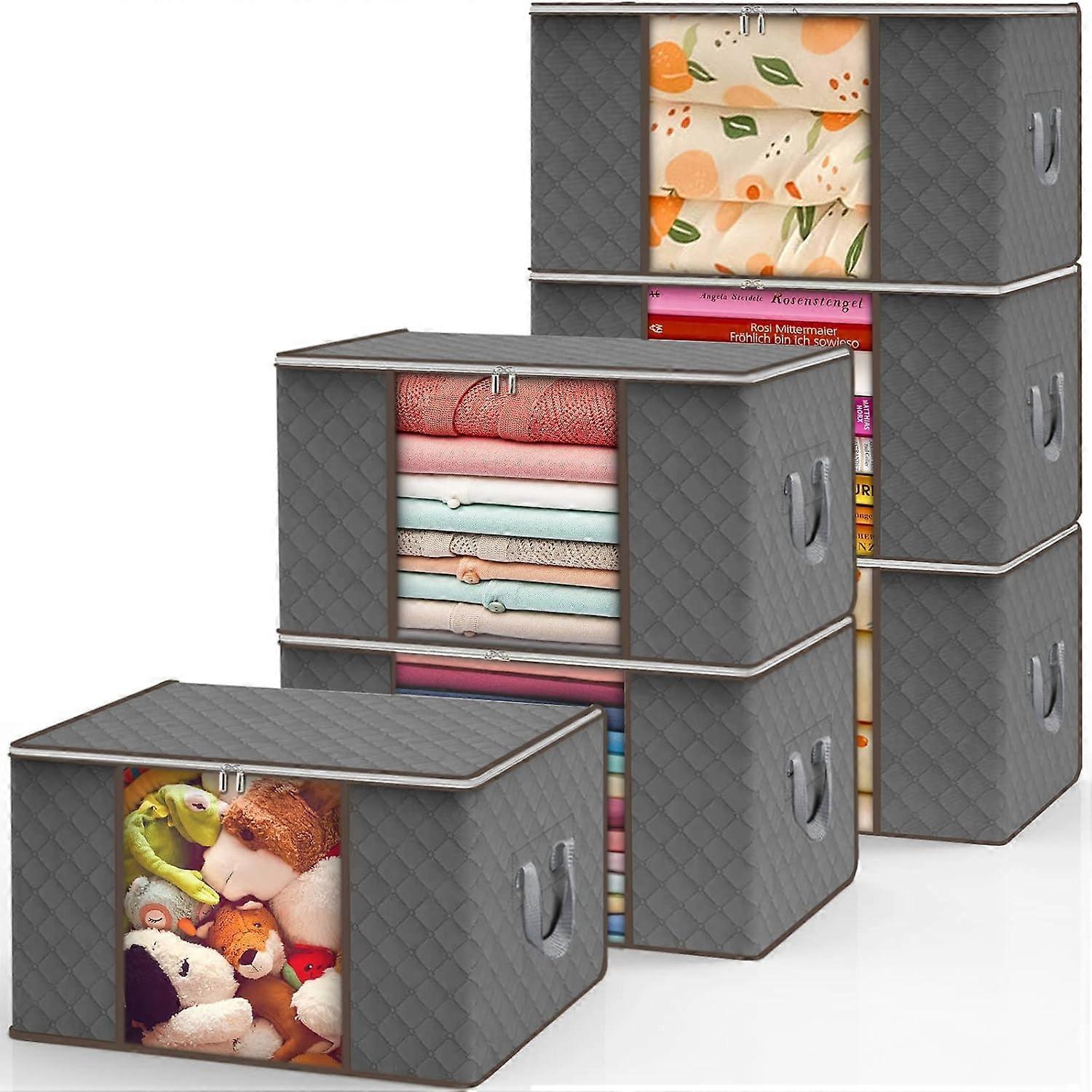 6 Pack Under Bed Storage Bags, 90L, Jackets Organizers with Reinforced Handle, Non-Woven for Duvets Clothes
