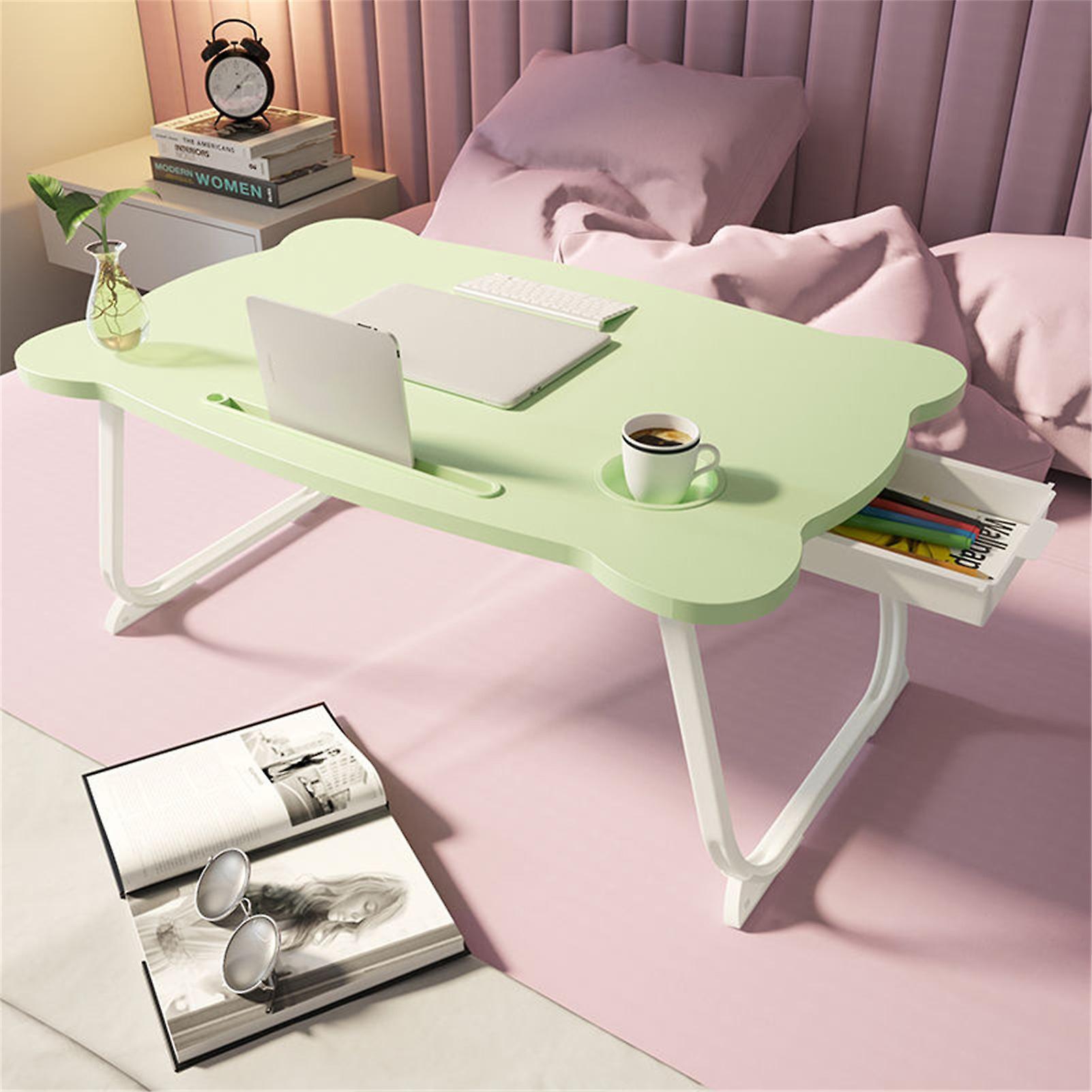 Bed Folding Table Portable Cute Breakfast Tray Lap Standing Notebook Desk for Home Dormitory Green Bear 60x40x28cm/23.6x15.7x11in