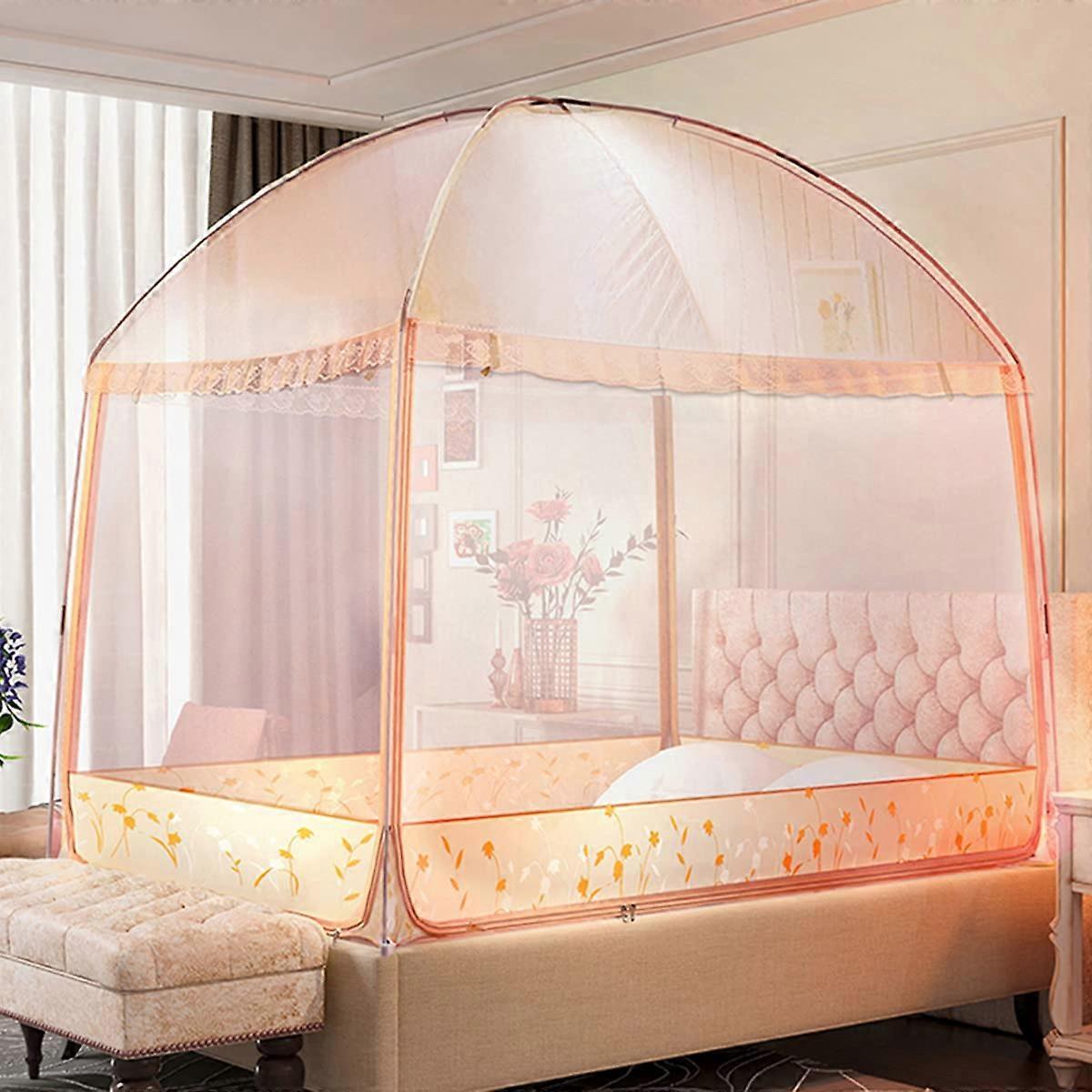 Mosquito net for bed, foldable antimosquito tent with 3 doors, freestanding canopy for outdoor travel, orange, 2.0 x 1.8 x 1.7 m