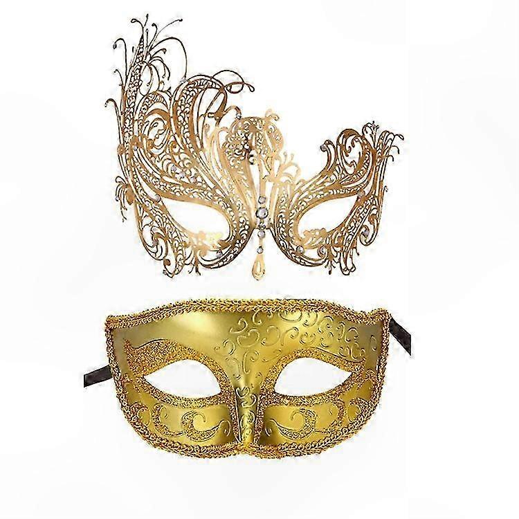 Venetian Masquerade Masks, 2-Pack Gold Metal Carnival Masks for Couples Prom Events