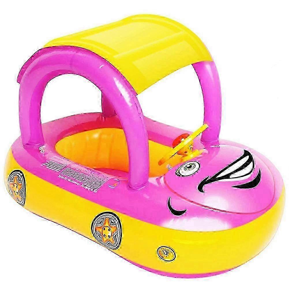 Baby Inflatable Pool Float with Canopy Thick PVC Car Shaped Swim Float Boat with Sunshade for Baby Kids Summer Beach Outdoor Play 2025