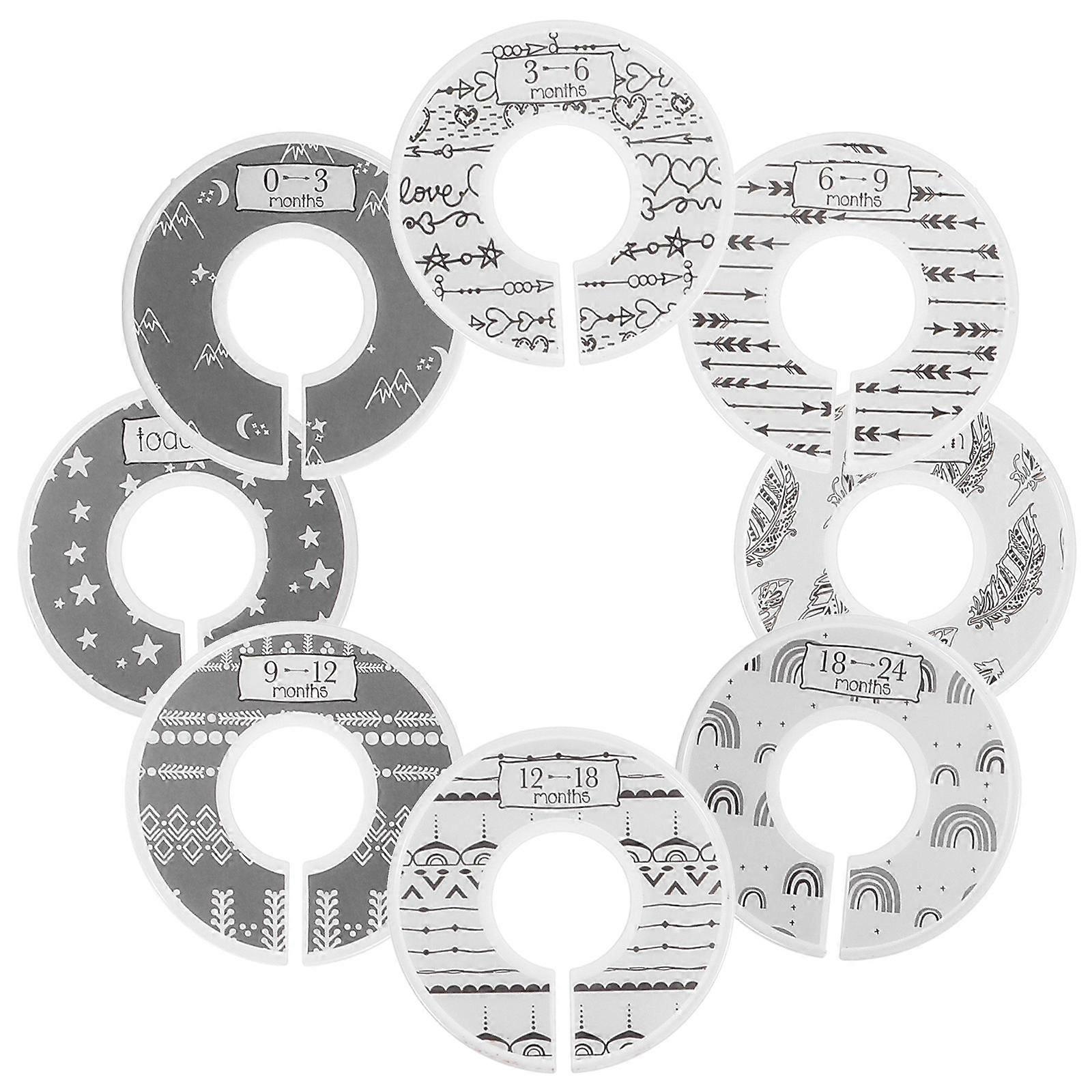 The baby clothes size divider is excellent and useful, made of plastic material, wonderful workmanship, delicate and beautiful. Easily meet your different needs, perfect for baby’s first two year. Excellent and funny, safe and durable for household use. Features - ColorAssorted Color -Material:Plastic - Size: 9.00X9.00X0.30cm/3.54X3.54X0.12in -Open ring design, they will fit most all standard closet rod, convenient and simple to use for you. -Chic and delicate design, looks your baby's closet, add more beauty to your baby's wardrobe. -You can give it as baby shower new parents, give them a little surprise, funny and interesting. -With these dividers, you can classify the baby's clothes according to their month ages conveniently. -Smooth surface, and very safe to use, do not worry about that it will cause any harm to your baby's clothes. Package list: 8 × Baby Closet Dividers