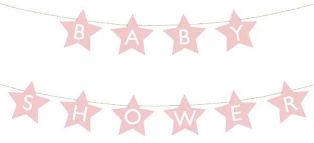 Bannerskylt för baby shower stjärnor ljusrosa 290cm x 16,5cm