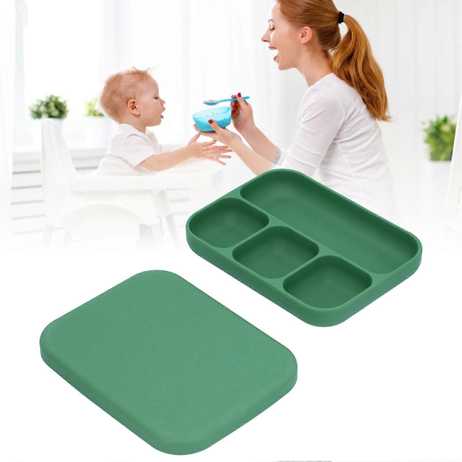 Baby Silicone Divided Food Plate with Lid 22x17x3cm Green