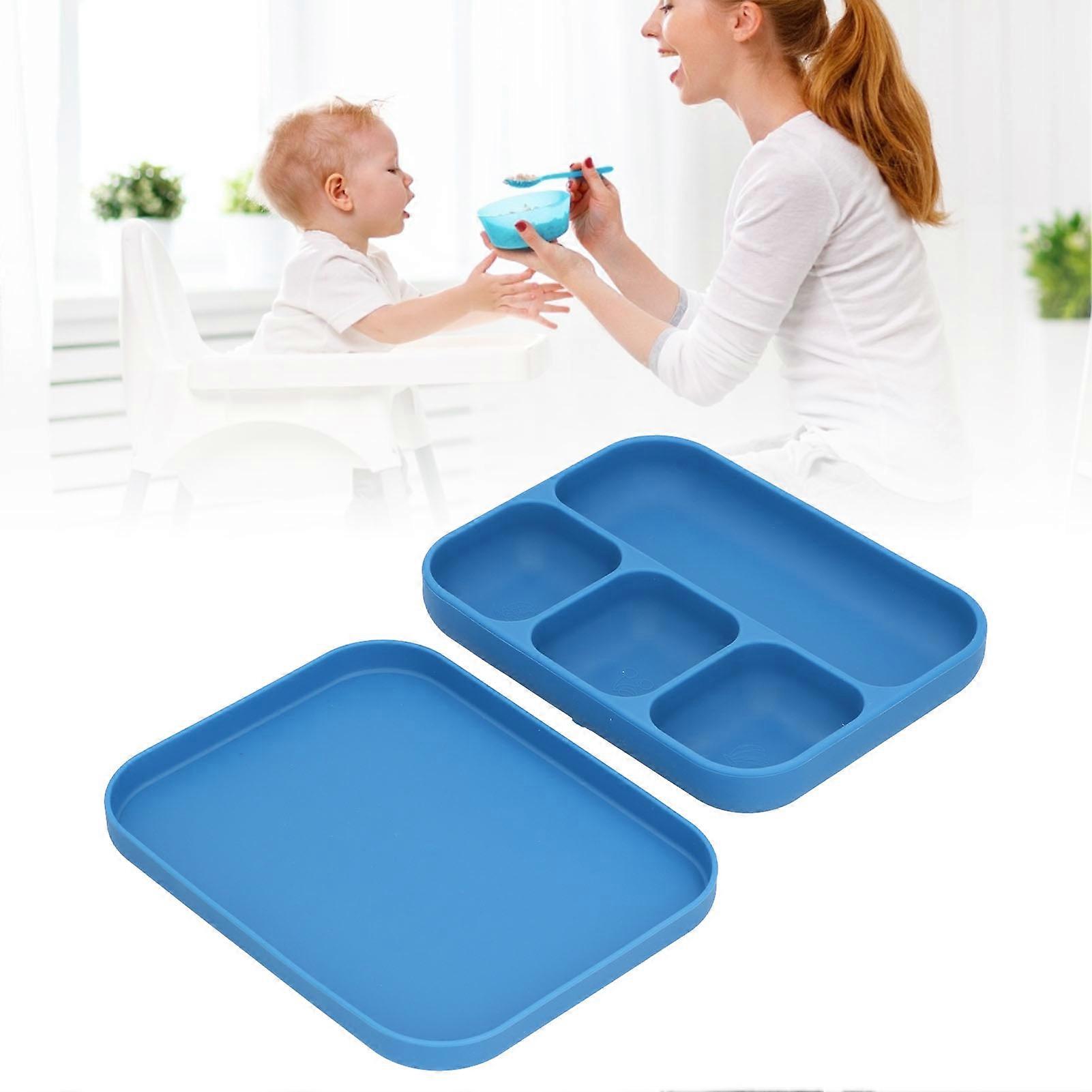 Baby Silicone Divided Food Plate with Lid 22x17x3cm Blue