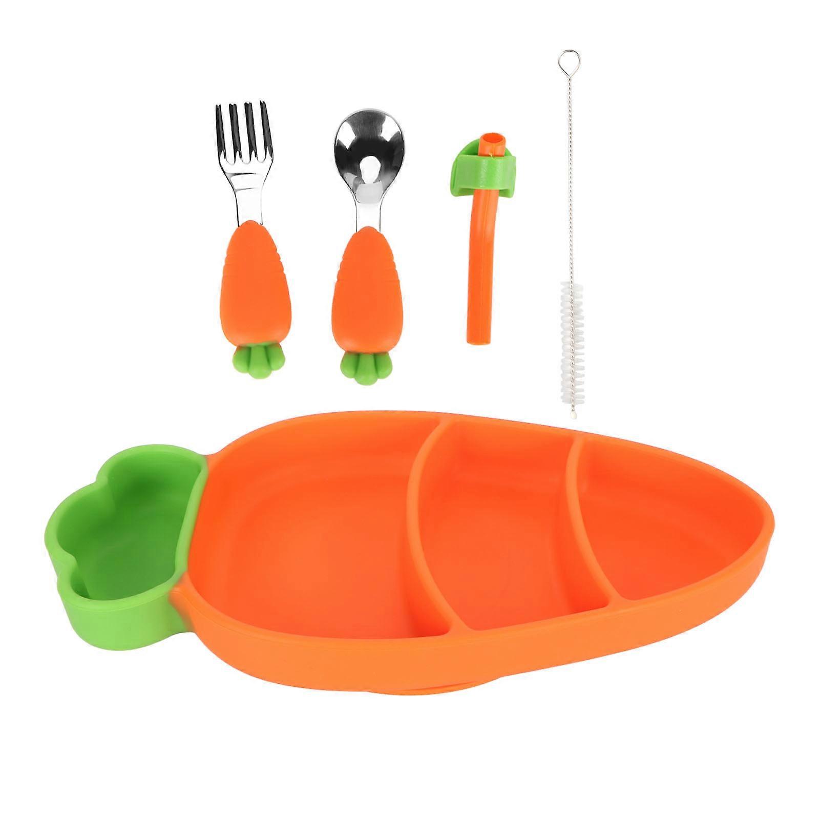 Baby Silicone Feeding Supplies Set with Fork Spoon Straw Cleaning Brush Carrot Shape Weaning Set