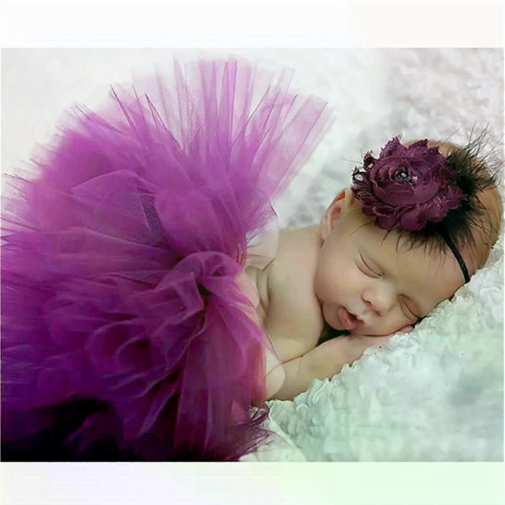 Baby Tutu Skirt Newborn Photography Props Cute Princess Infant Outfit With Flower Headband Accesssories Baby Girls Dress