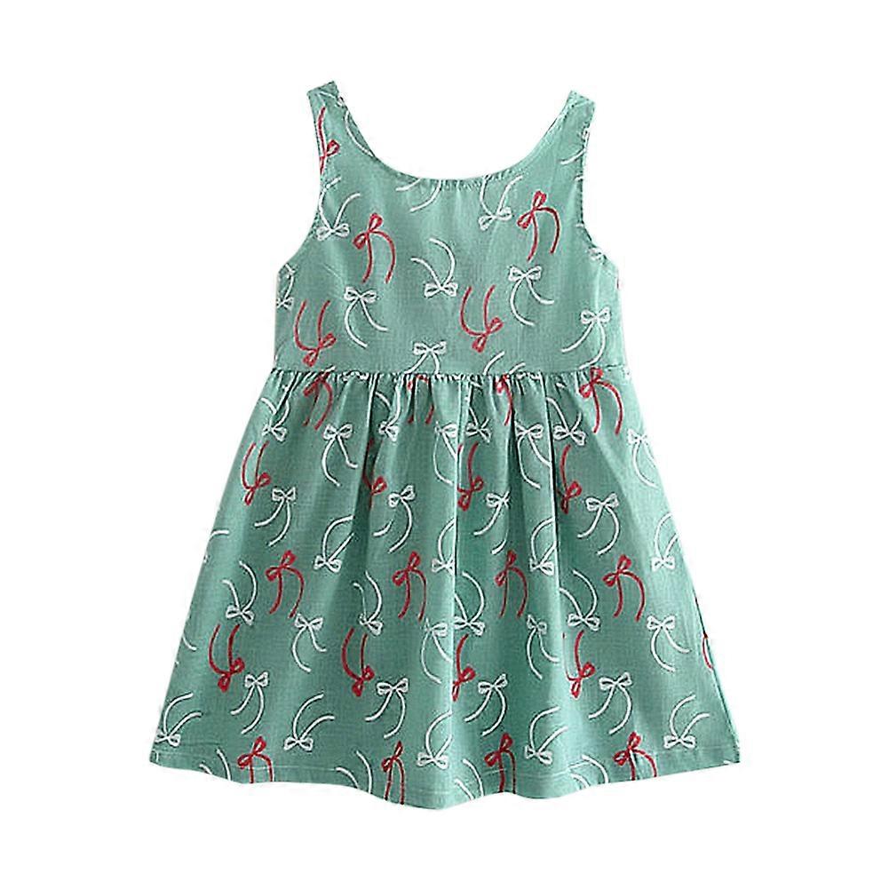 Baby Dress Cotton Blend Floral Pattern Summer Sleeveless Girls One-piece Dress (Green 100)