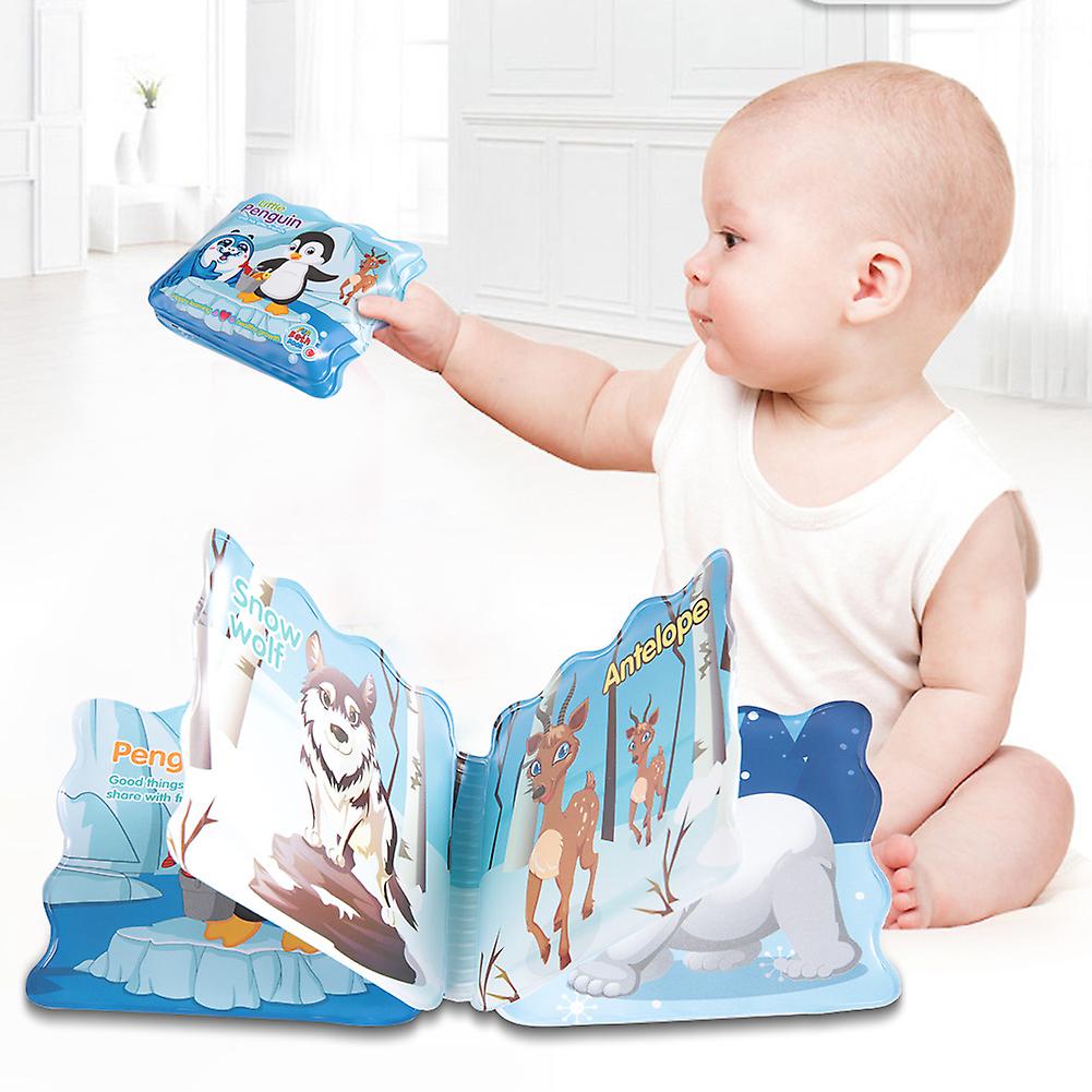 Baby Bath Plastic Book Tear Proof Infant Shower Toy Early Education Toys for Bath Time(penguin)