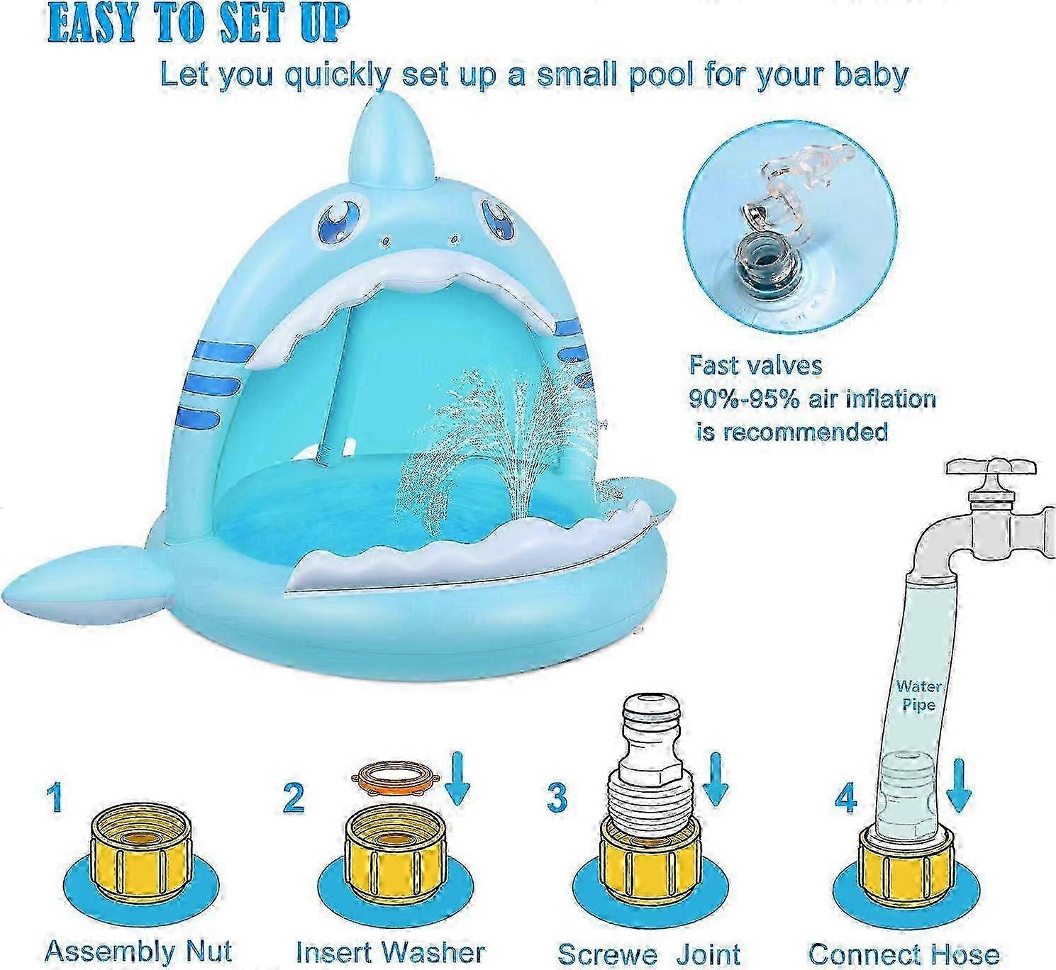 Baby pool, shark jumping children swimming pool with canopy, portable swelling with water sprinkler 2025