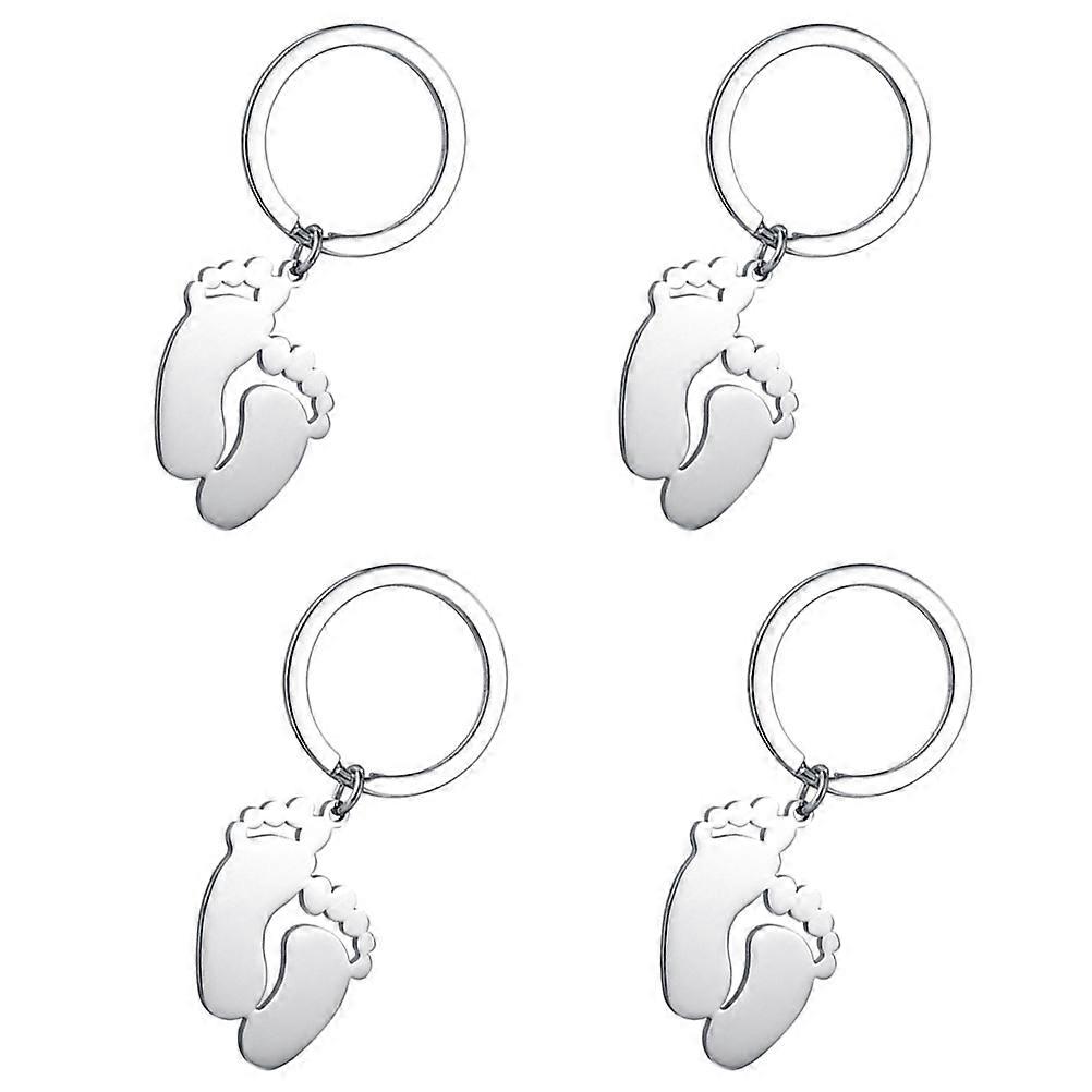 Baby Footprint Keychain Memorial Keychain Bag Accessory Silver 5 5x2cm Welcoming 4Pcs
