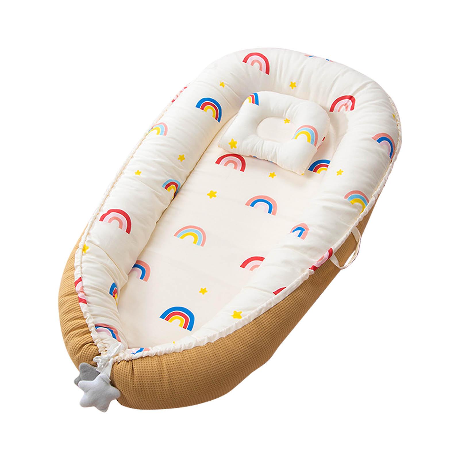 Baby Lounger Soft Breathable Ergonomic Design Portable Newborn Infant Sleeping Bed for Indoor Outdoor Lemon Yellow Rainbow (Honeycomb Model) 50x85cm