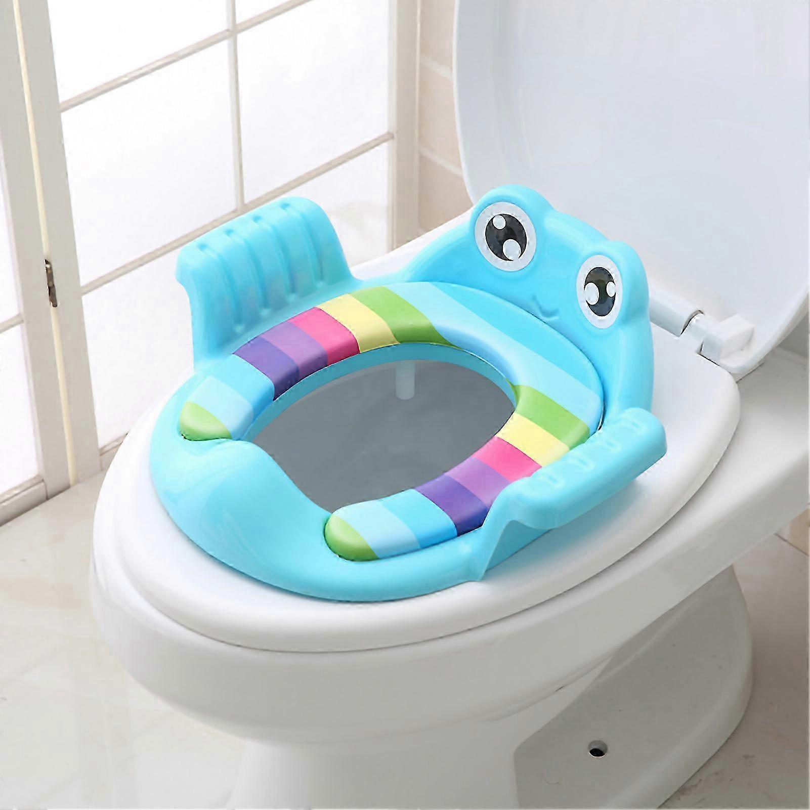 Baby Toilet Seat Cute Children's Baby Infant Double Armrest High Back Splashproof Anti Slip Toilet Seat Blue hwy