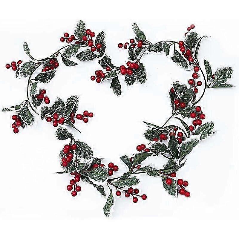 Berry Christmas Holly Garland, 200cm Artificial Berry Garland with Holly Leaves