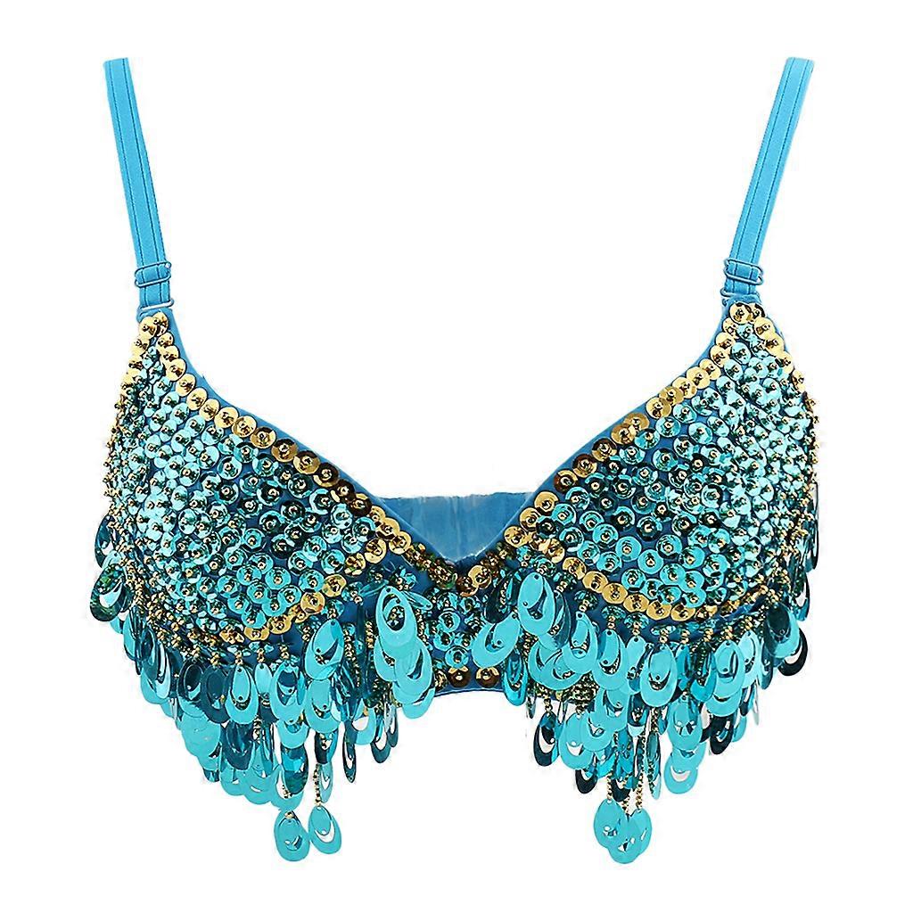Belly Dance Beaded Bra Sequins Top Sexy Dancing Singer Costume Tassels Blue
