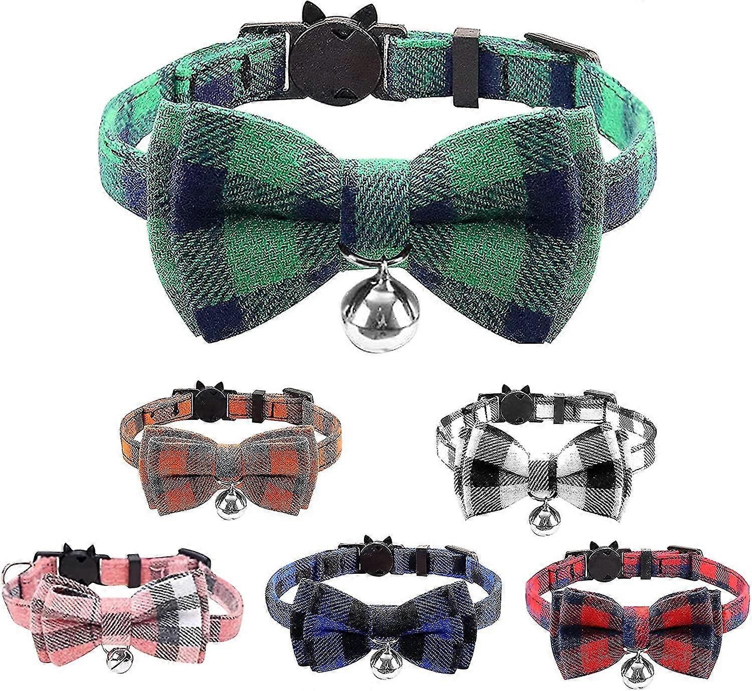 6 Pack Cat Collar With Bell And Bow Tie, Quick Release Safety Buckle Pet Collar, Soft Tartan Collar, Cute Plaid Adjustable Cat Bow Tie Collar For Pet