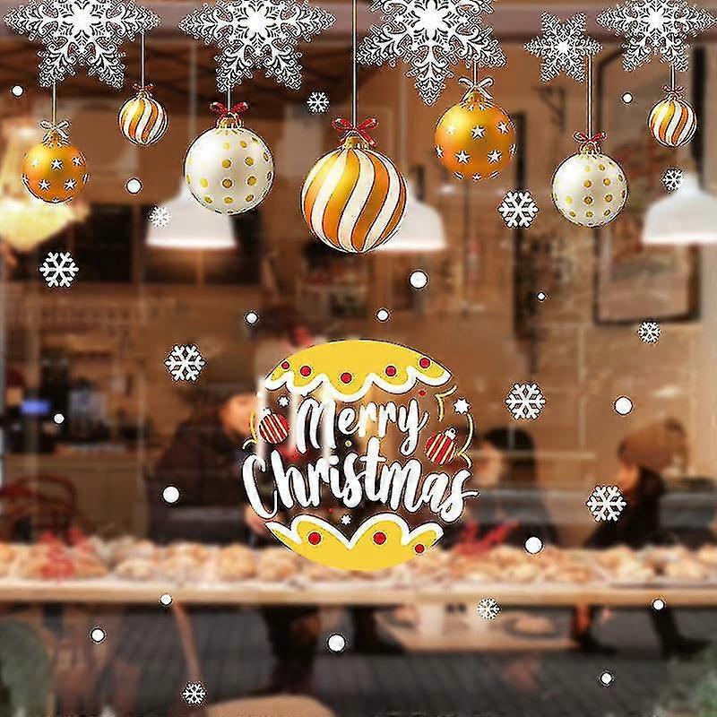 Bell Golden Snowflake Christmas Sticker Window Glass Background Christmas Decoration Electrostatic Sticker,C