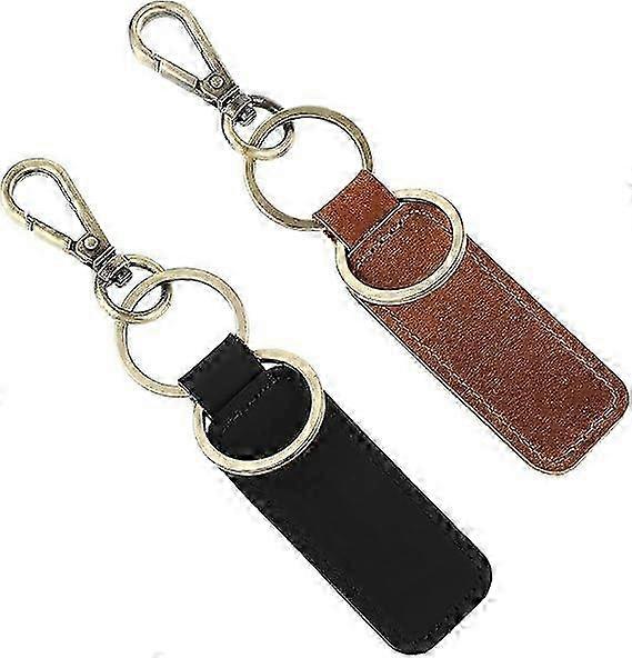 2 Pcs Genuine Leather Keychain with Belt Loop Clip - Universal Car Key Holder (Black/Brown)