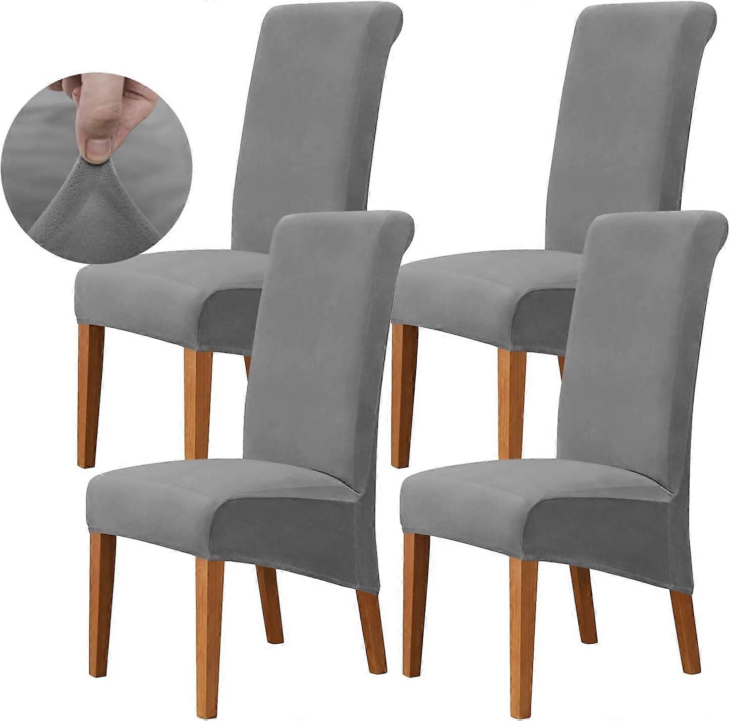 Velvet Chair Cover, Stretch High Back Chair Cover, Removable and Washable Chair Covers for Hotel Wedding Decor (Gray 4PCS)