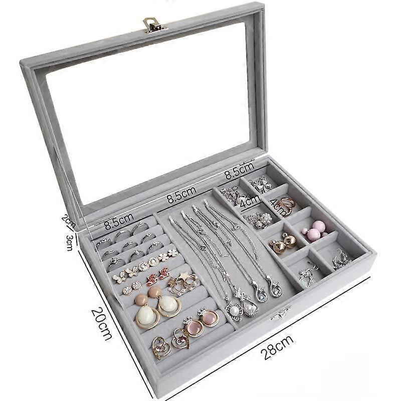 Velvet Glass Ring Earring Jewelry Display Organizer Box Tray Holder Storage Case