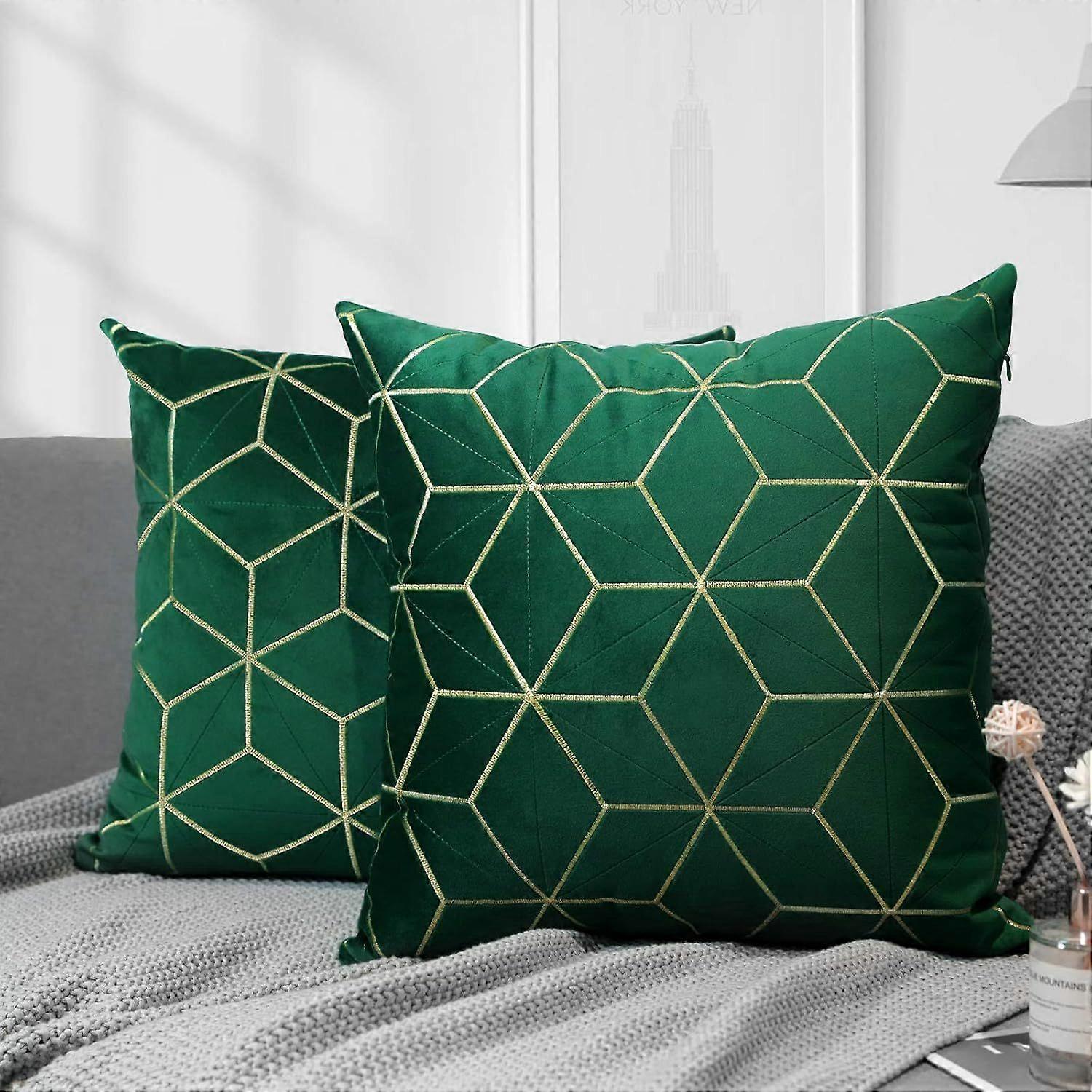 Velvet Cushion Cover, 2 Pieces Square Decorative Pillow Cover with Golden Embroidery