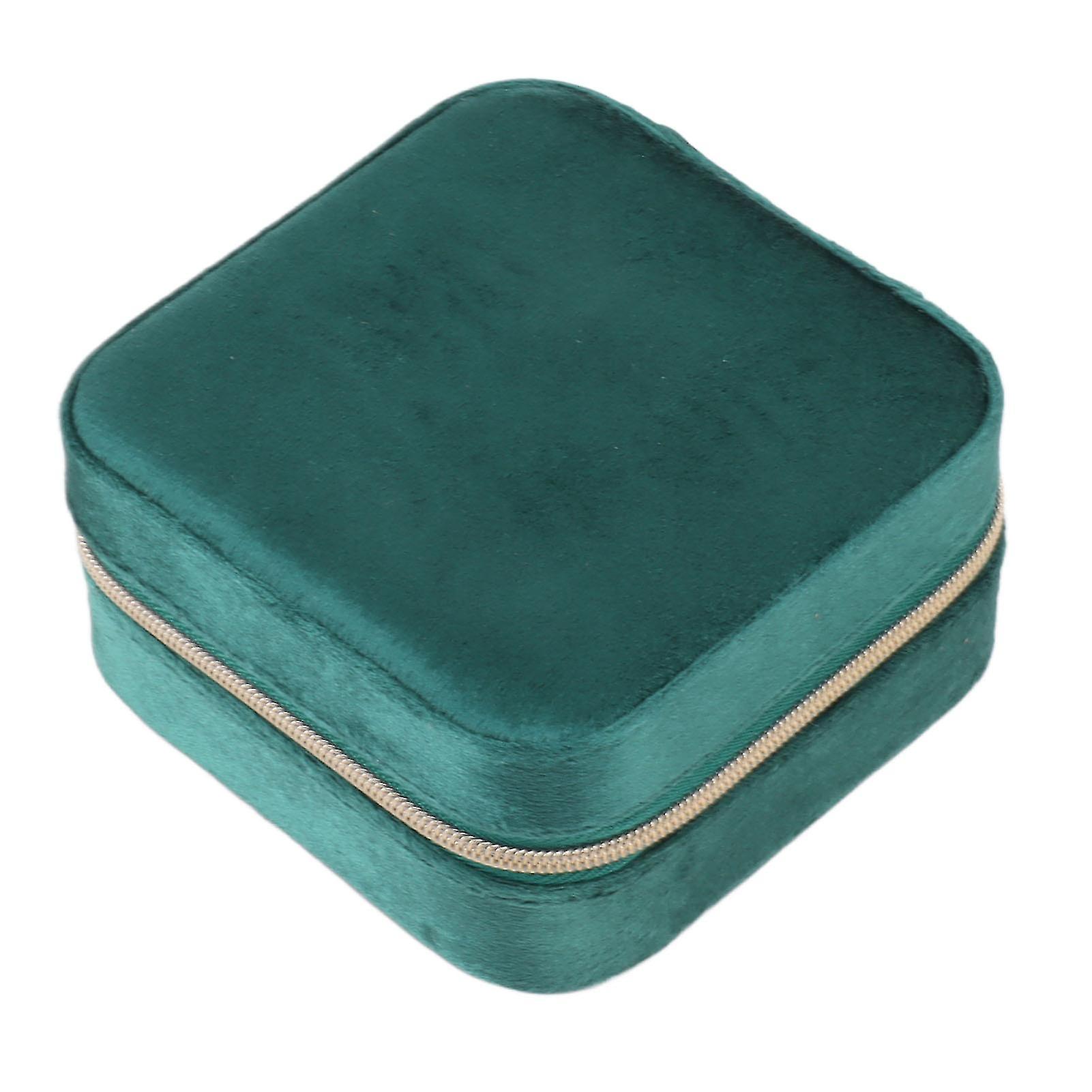Velvet Jewelry Box Compact Small Zippered Travel Organizer Portable Storage Case for Daily Use Blackish Green