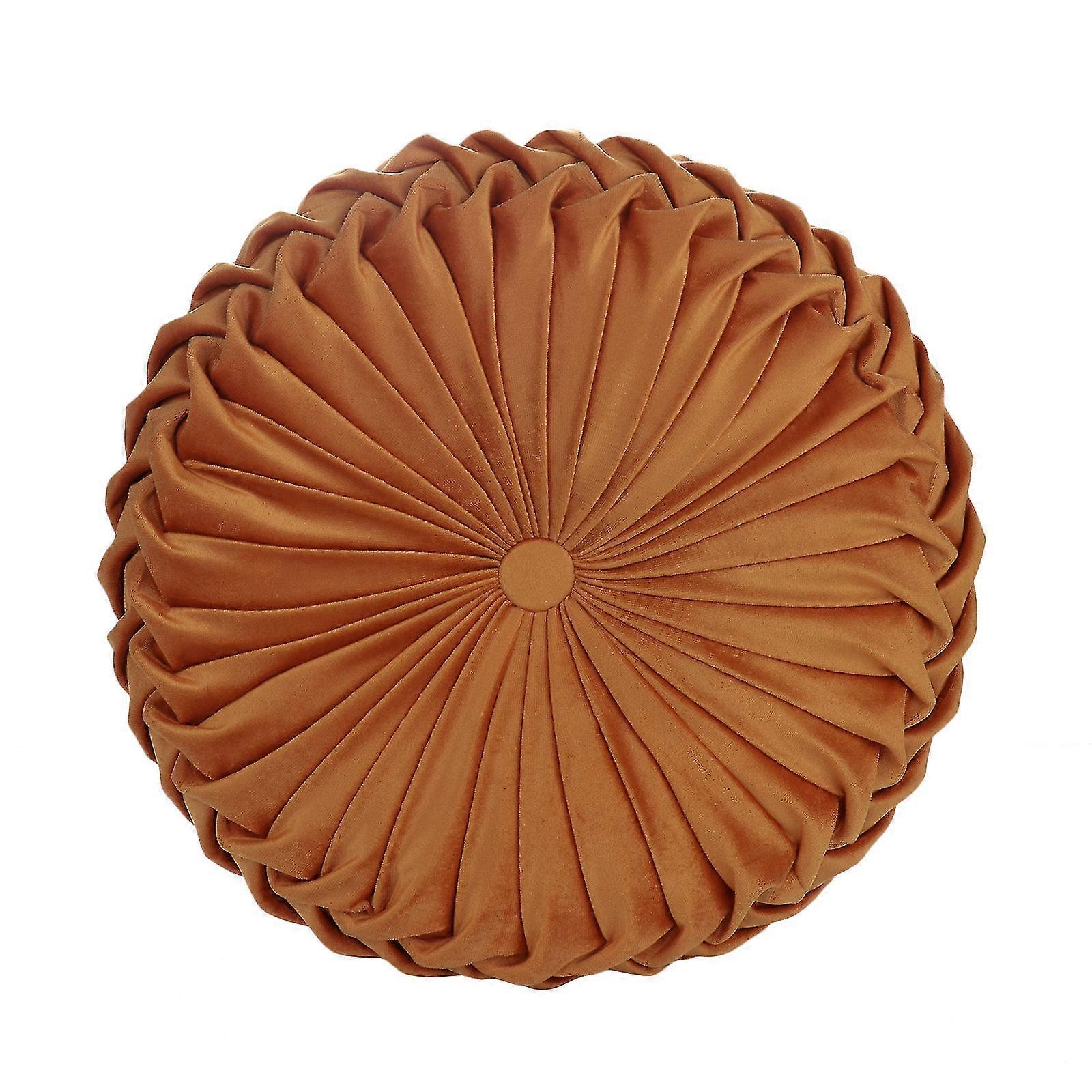 Velvet Round Pumpkin Wheel Cushion - Orange, 38x10cm