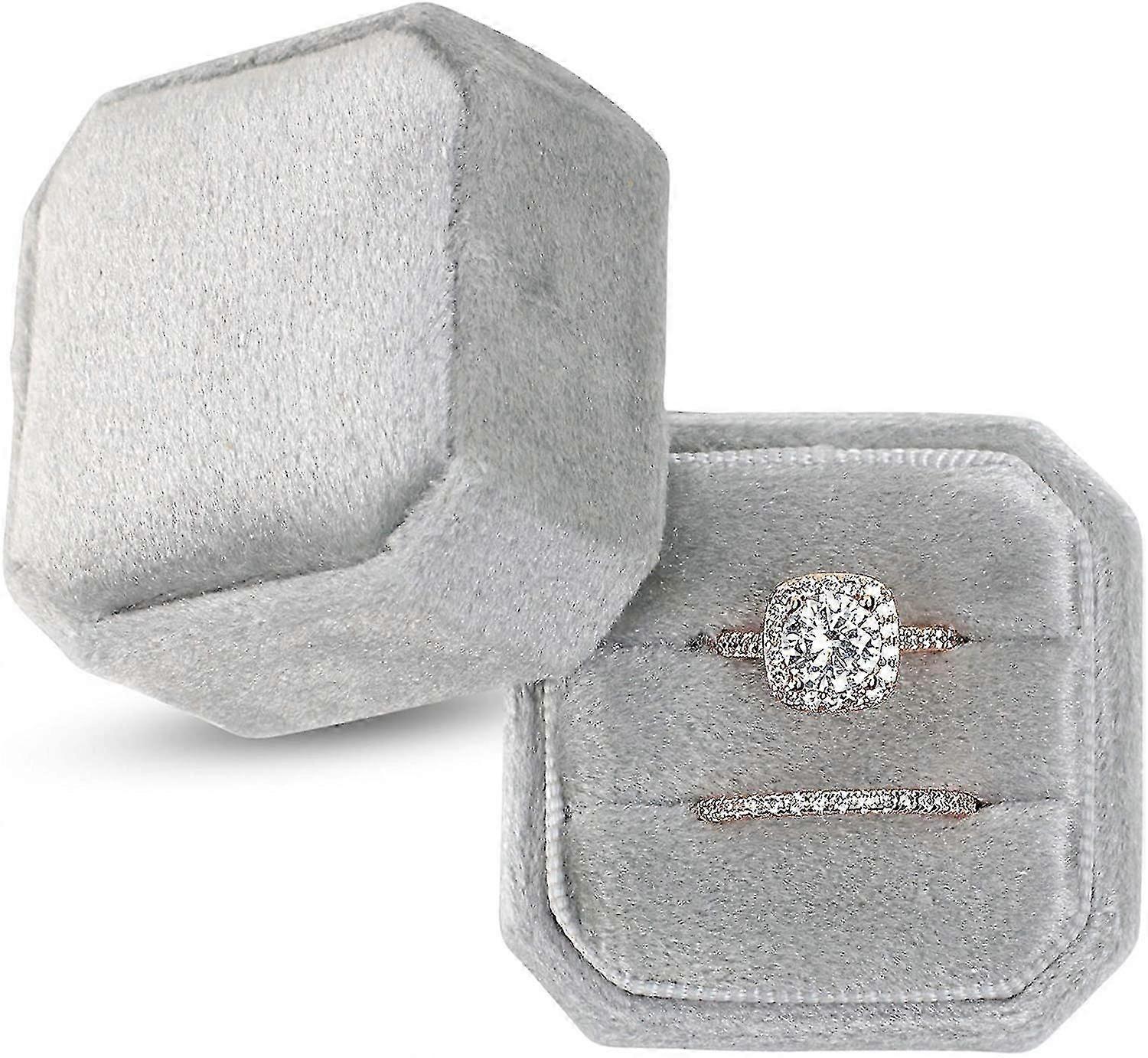Velvet Ring Box Double Slot Vintage Inspired - Square Ring Box - Perfect For Engagement Bride Wedding Photography - Bridal Gift For Mrs. (grey)