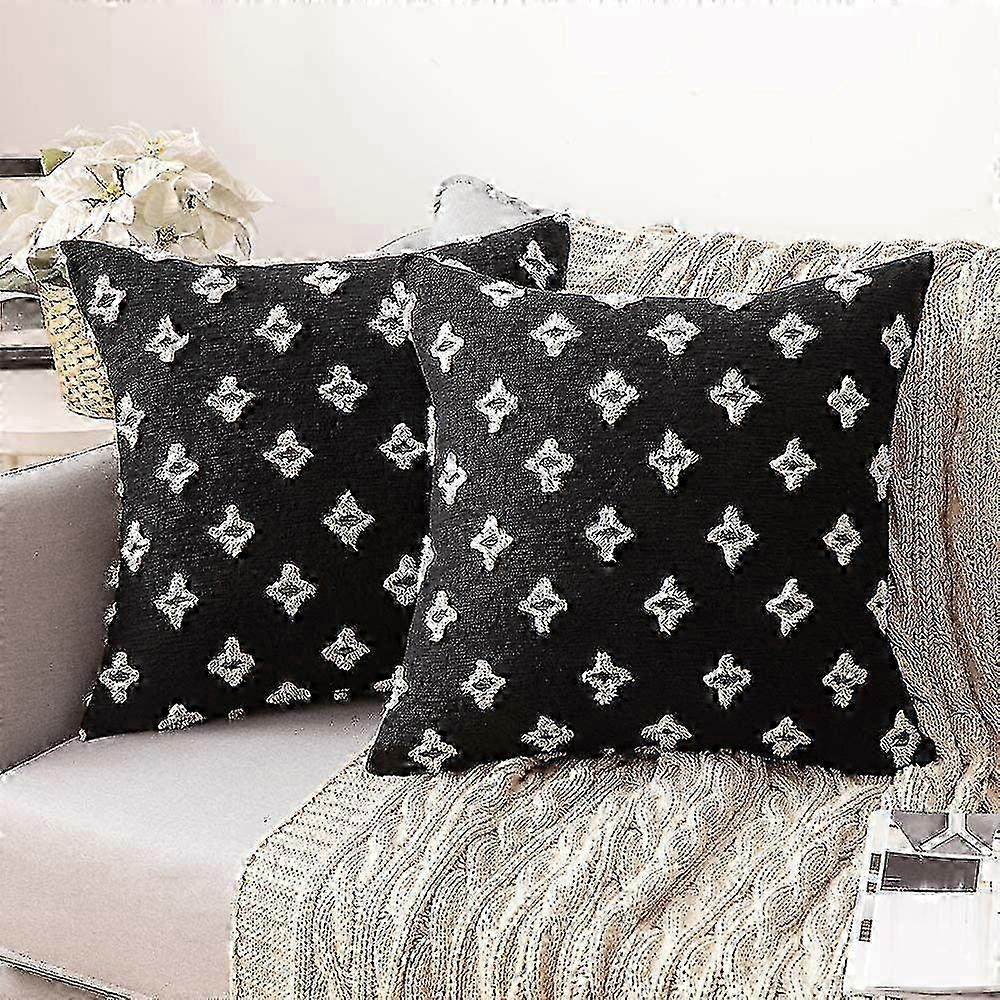 Velvet Throw Pillow Diamond Jacquard Soft Couch Pillows Set Of 2 (inserts + Pillow Covers, Black)