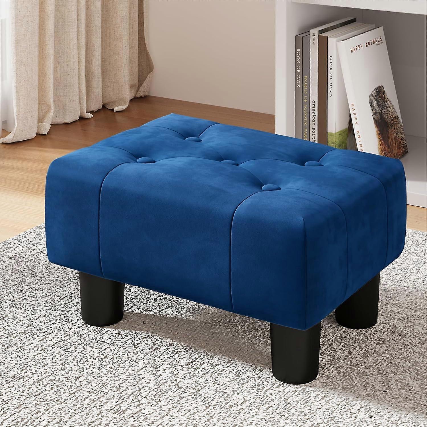 Velvet Tufted Footstool 9''H with Legs, Non-Slip Pads, Navy Blue, Compatible with Living Room & Couch