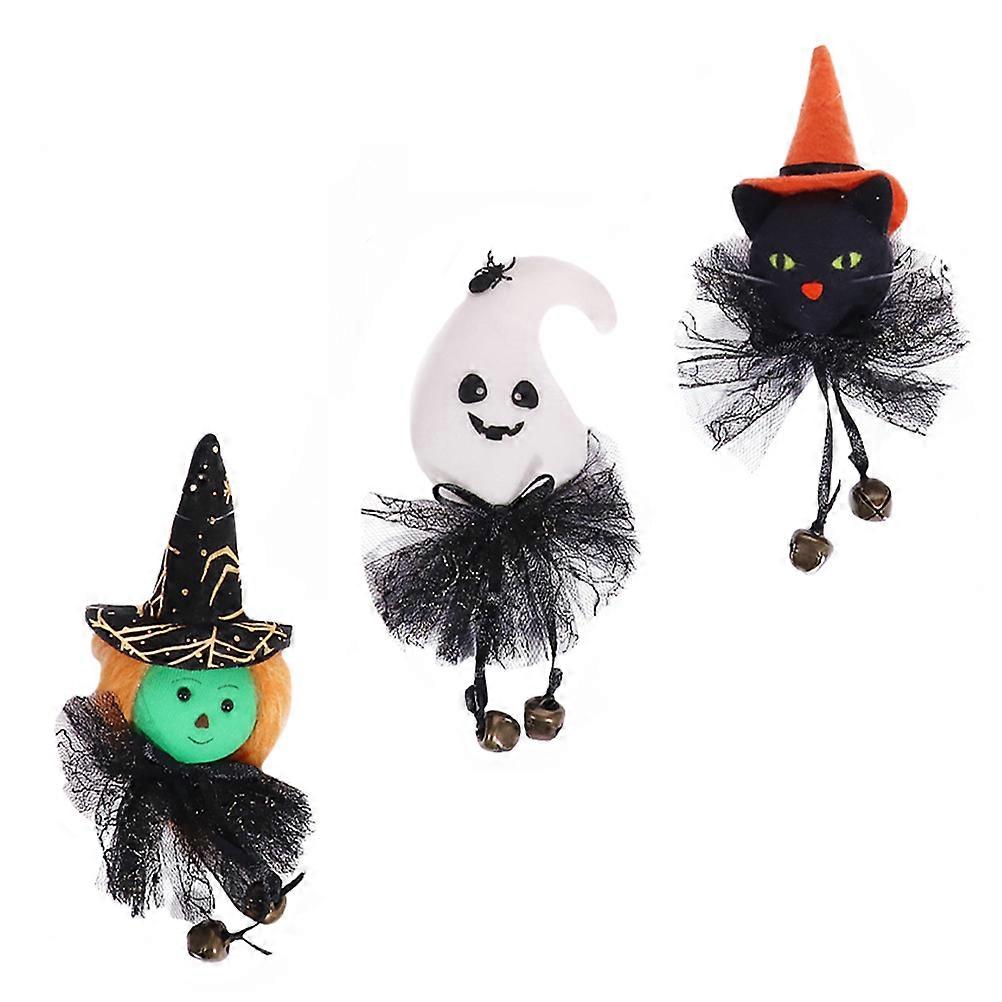 Halloween Cat Ghost Pendant with Bells – Spooky Indoor Outdoor Decor Featuring Pumpkin, Witch & Cat Designs – 3pcs Set