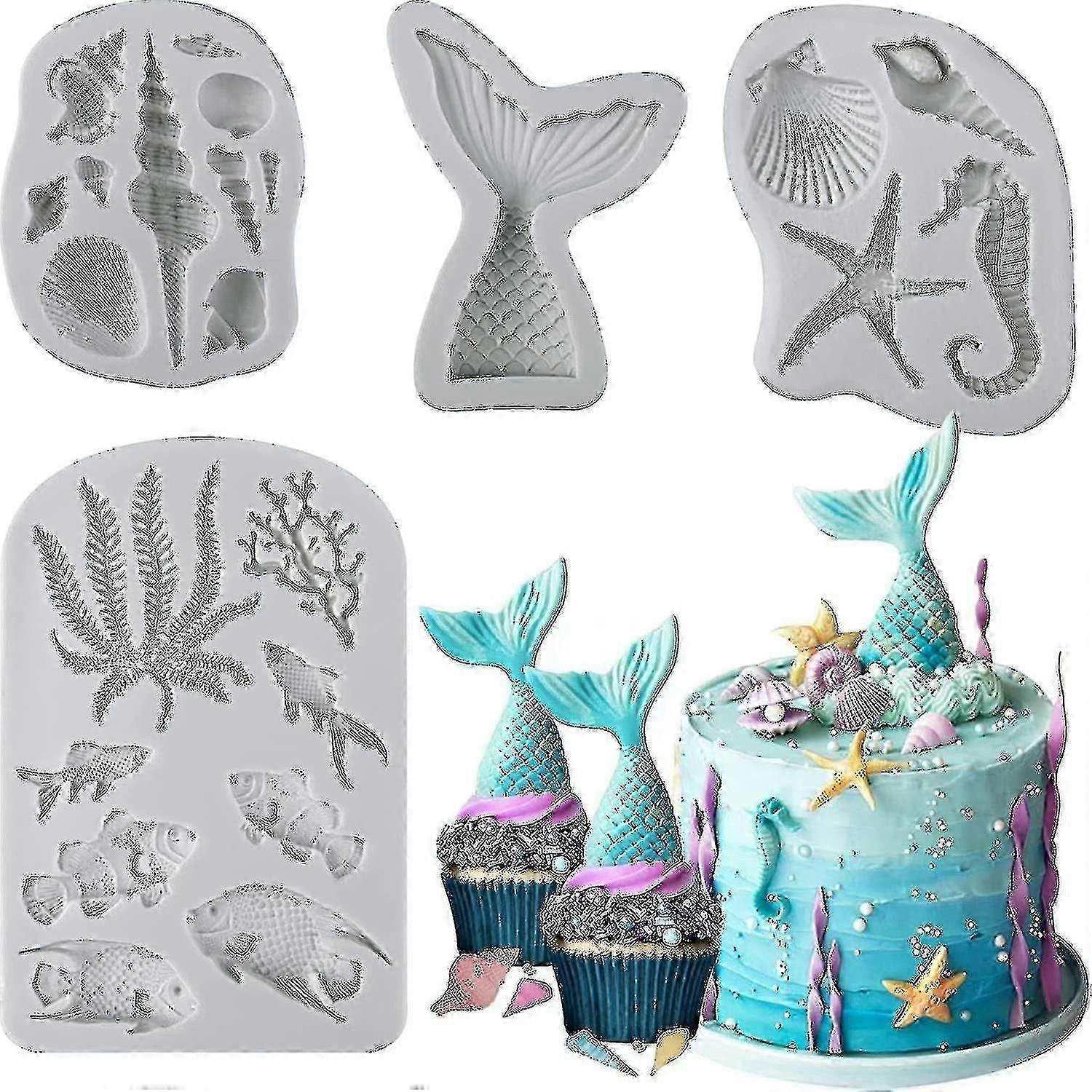4-Piece Marine Silicone Molds for Baking, Cake Decor & Soap Crafting - Mermaid Tail, Seashell, Conch, Starfish