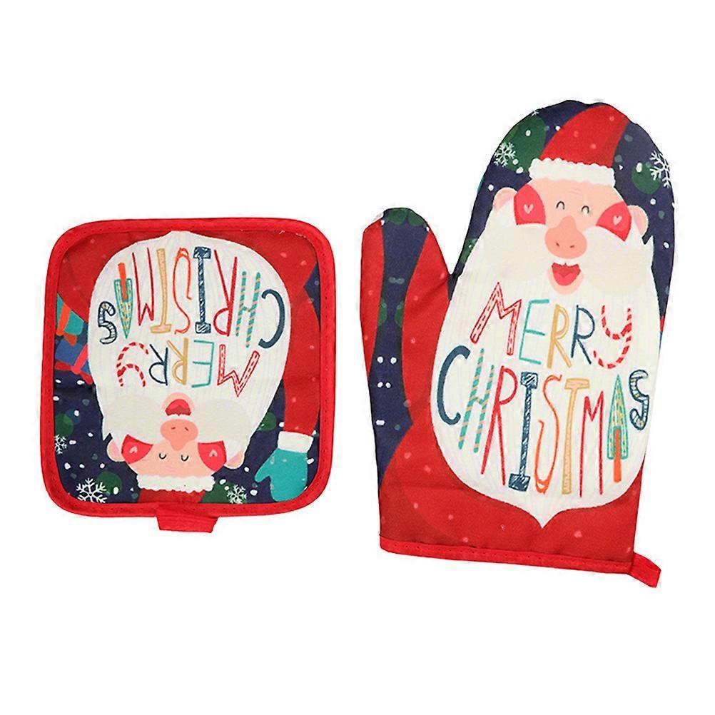 Baking Oven Mitt Cooking Microwave Oven Glove Christmas Themed Polyester 9.82X6.48X0.39in 1Set