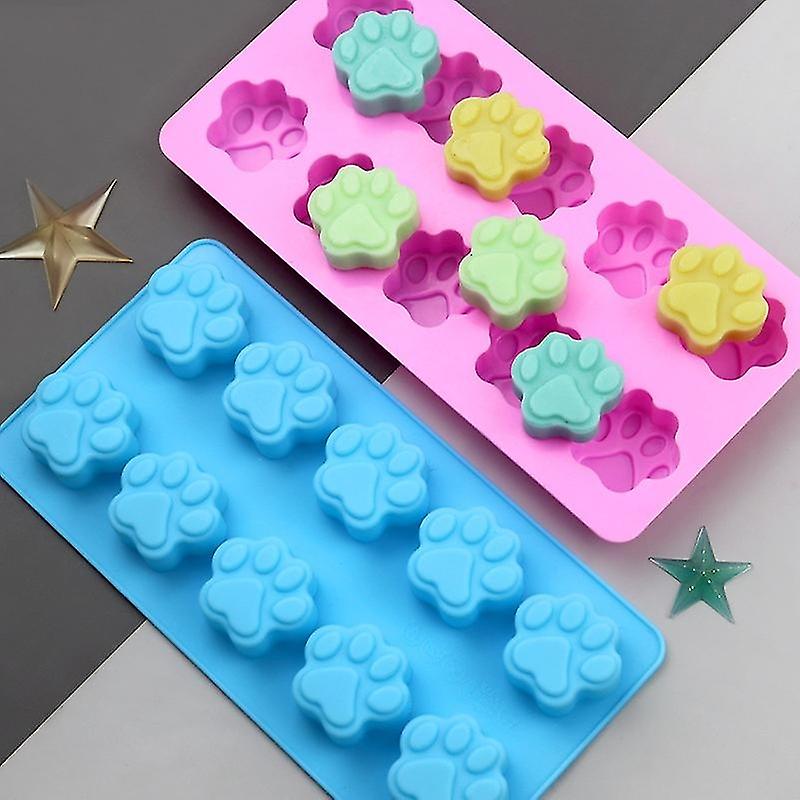 Baking pan, 2 pink and blue silicone molds, 10 cartoon cat and bear paw chocolate molds, jelly molds