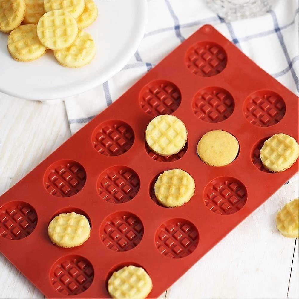 Cake Tins for Baking Baking Moulds Waffle Mold 18 Grids Silicone Mini Waffle Bakeware Mould Diy Round Biscuit Chocolate Mold Baking Accessories red1pc