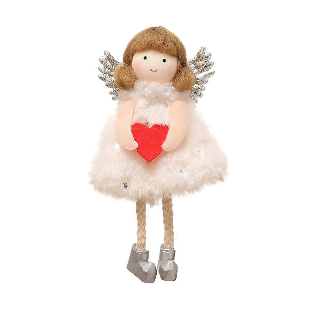 Beige Plush Angel Pendant for Home Decoration Heart Shaped Hanging Decor Gift 5.5 Inch