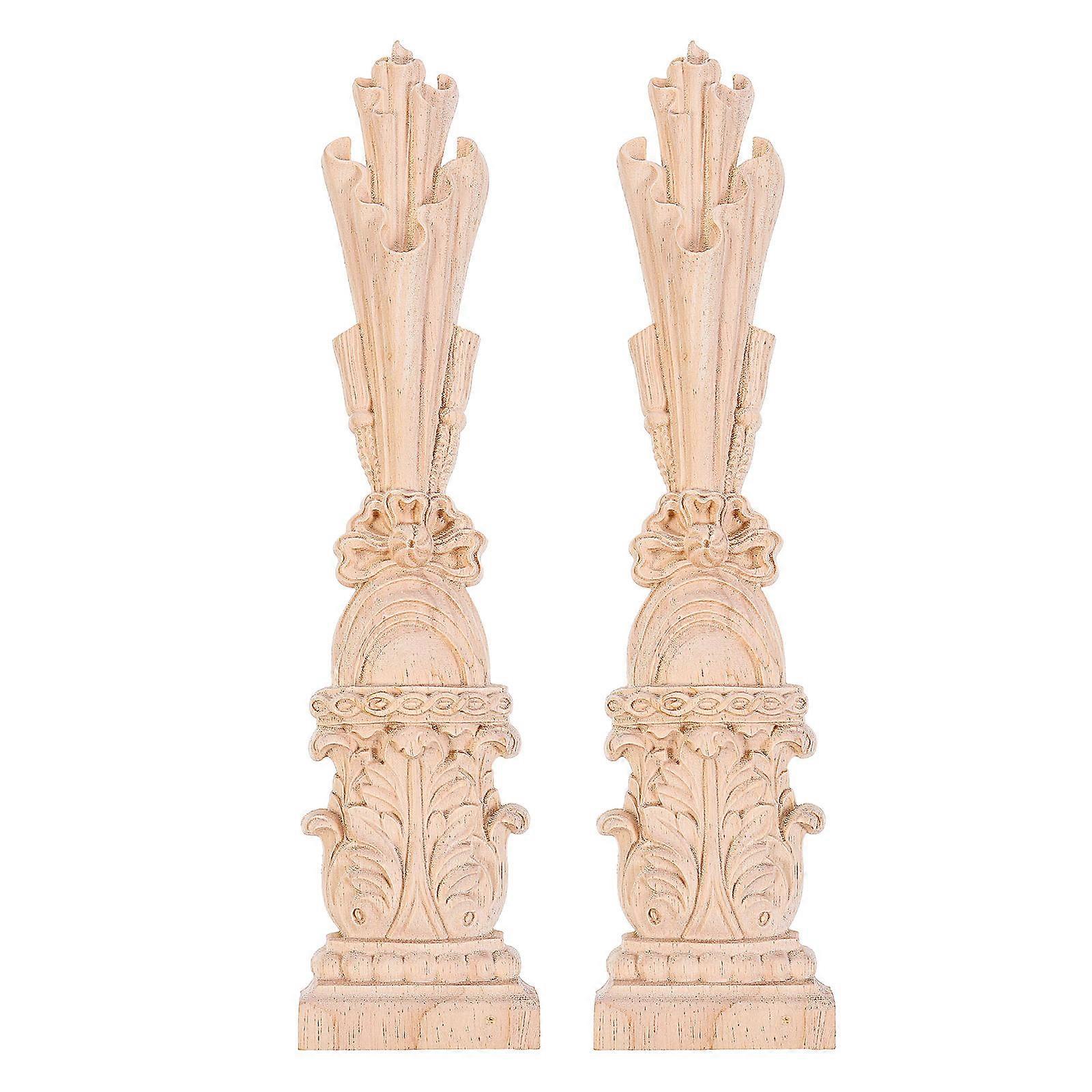 Beige Plastic Wooden Decals for Decor Retro Appliques Classic Roman Column Shape 2Pcs