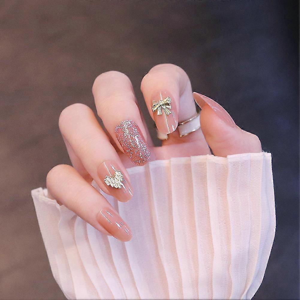 Beige Shiny Round False Nails User-friendly Easy To Apply And Remove Nails Glue Models