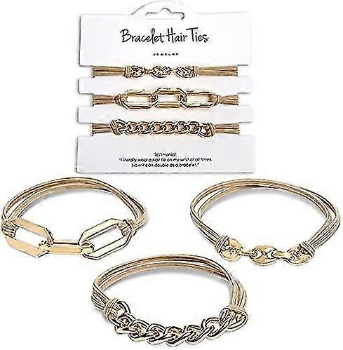 3pcs Bracelet Hair Ties With Beige Gold Black Elastic, Looks Cute On Your Wrist And Great In Your Hair