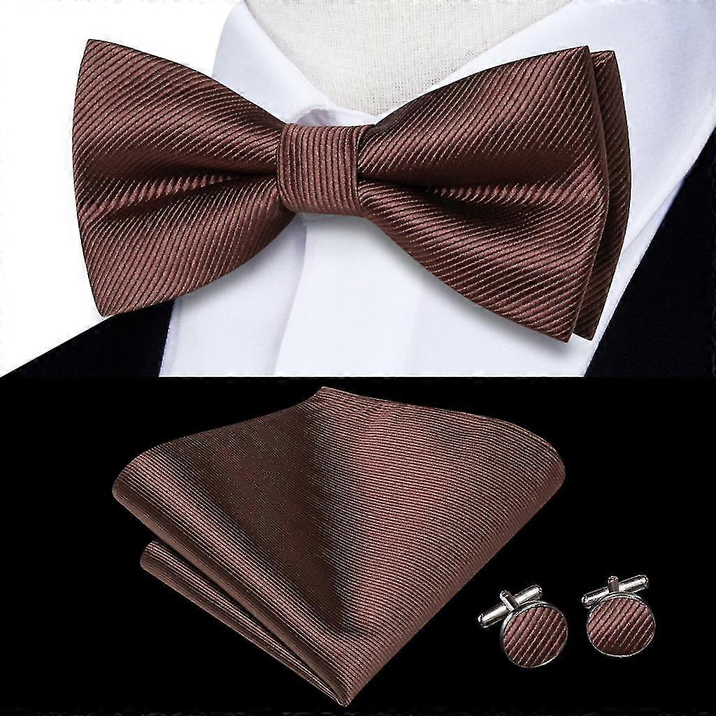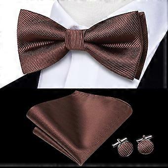 Beige Champagne Gold Silk Mens Bow Tie Hanky Cufflinks Set Jacquard Floral Pre Tied Butterfly Bowtie